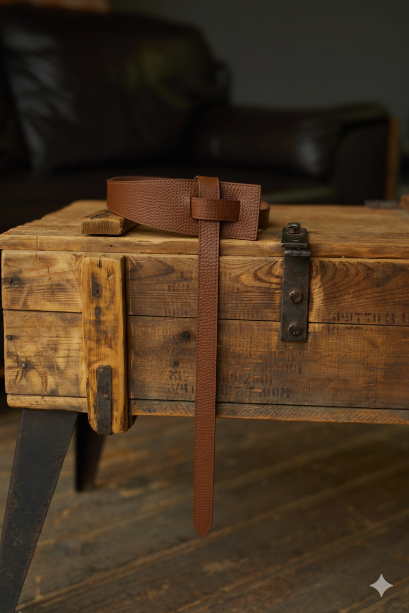 Ez a csomózott bőröv igazi alapdarab, melynek a saját anyagából képzett hurok modern, bohém, mégis elegáns megjelenést kölcsönöz, miközben gyönyörűen hangsúlyozza a derekat. Ha egy olyan kiegészítőt keresel, ami azonnal keretet ad a szettednek, és a legegyszerűbb ruhádat is különlegessé teszi, megtaláltad.