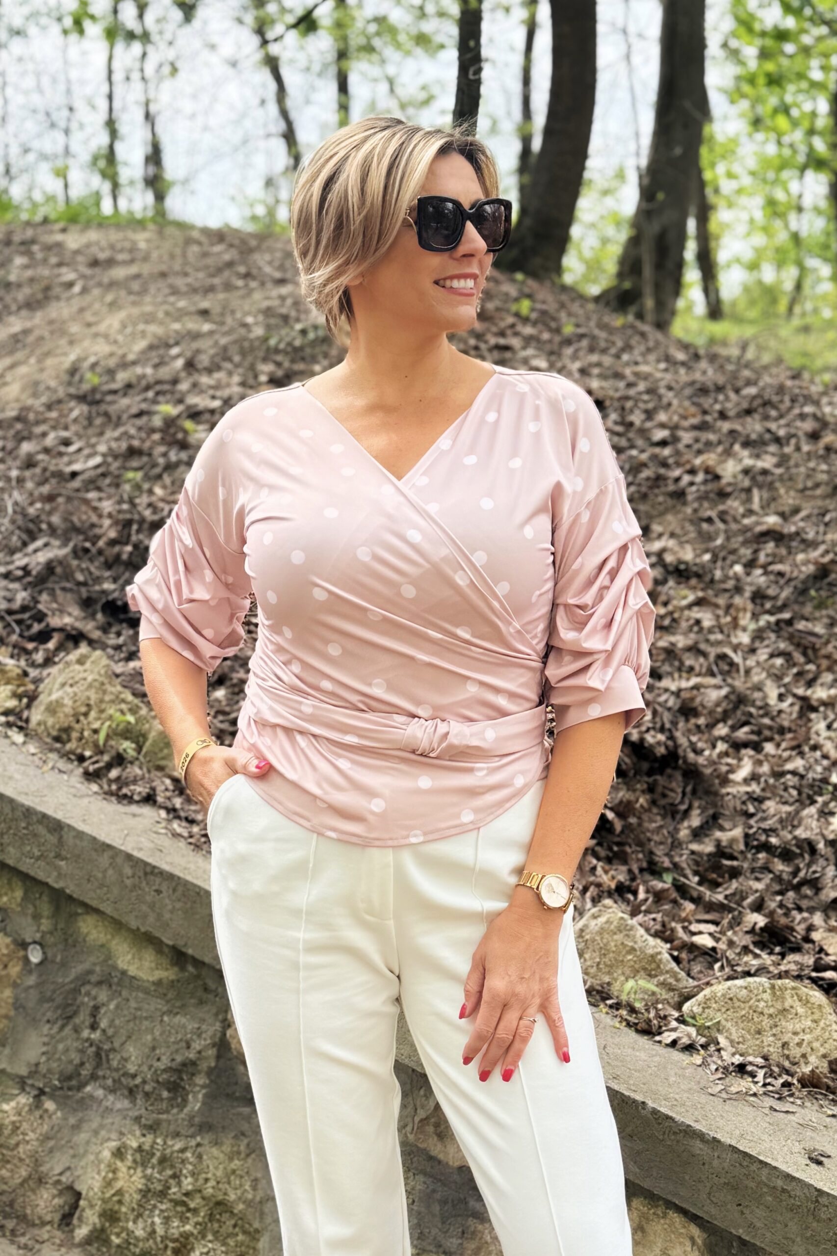 A különleges, enyhén ráncolt ujjak karaktert adnak a darabnak, miközben a lágy esésű anyag egész napos komfortérzetet biztosít. A blúz többféle mintában és színben elérhető – a klasszikus egyszínűtől a játékos mintákig –, így könnyen megtalálod a stílusodhoz leginkább illőt.