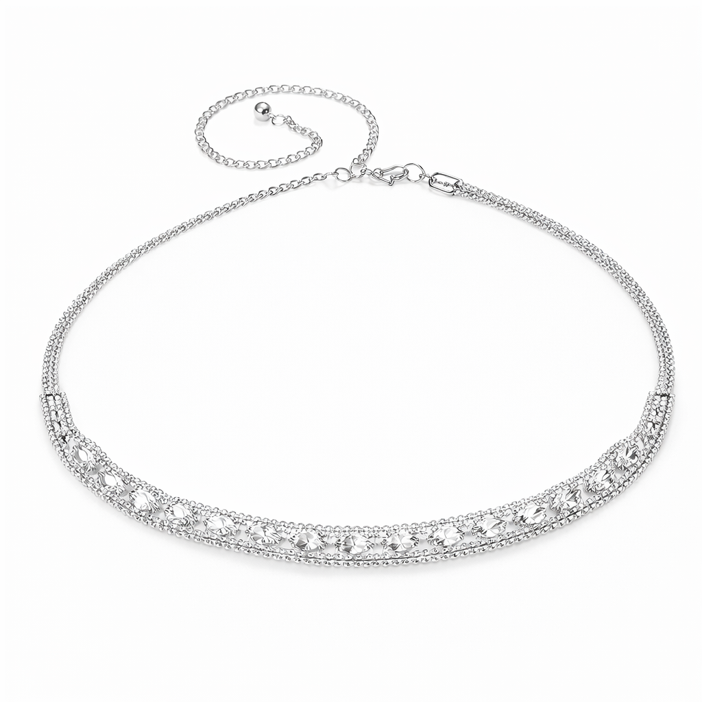 Az állítható láncos záródásnak köszönhetően kényelmesen illeszkedik különböző méretekhez, így ideális választás estélyi ruhákhoz, alkalmi viseletekhez, esküvőkre vagy különleges eseményekre.
