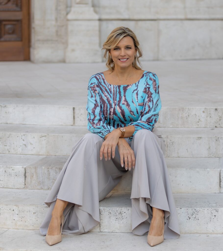 A modell méretei: mell – 108 cm, derék – 81 cm, csípő – 104 cm.