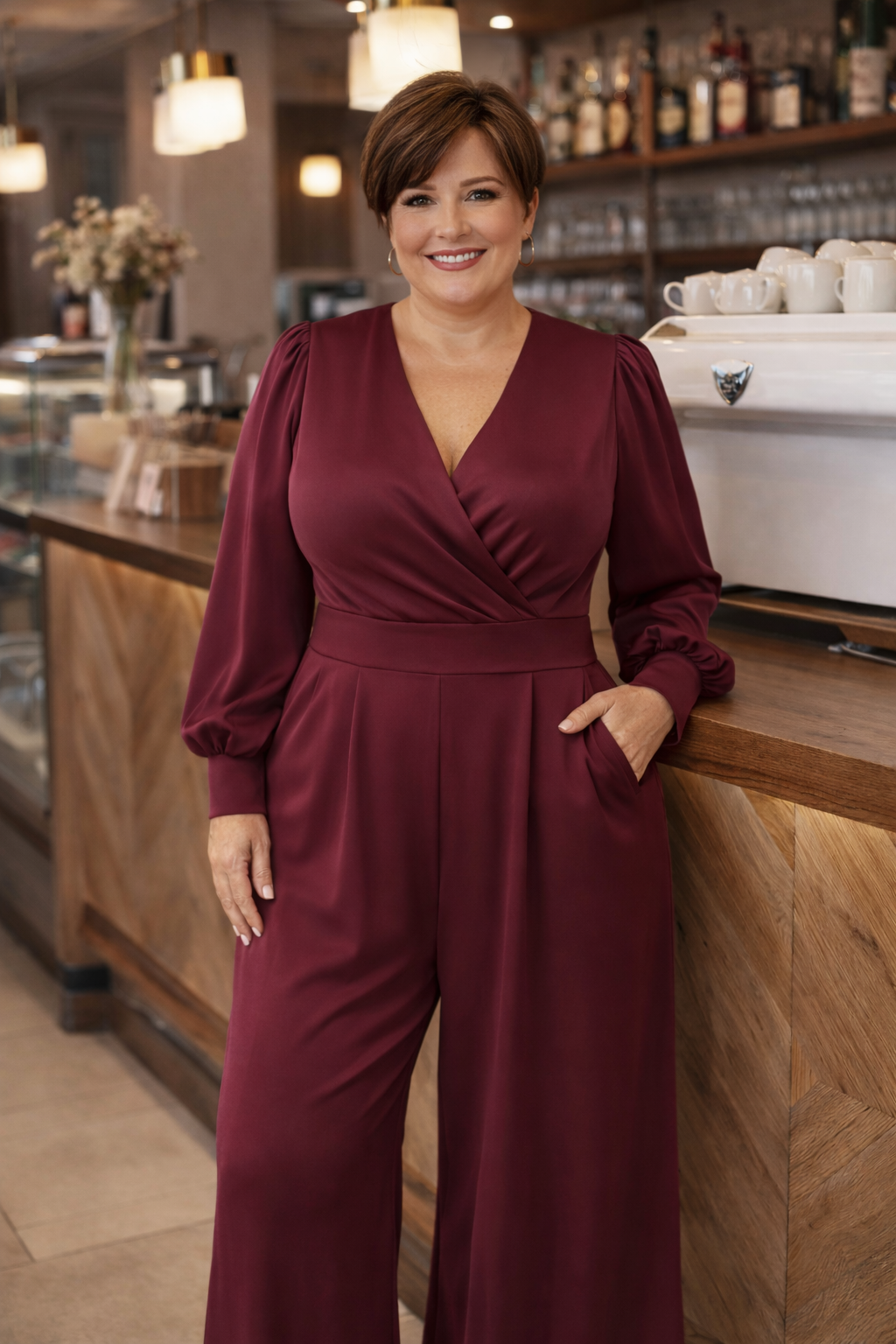 Elegáns, nőies, hosszú ujjú overall, amely különleges alkalmakra és kifinomult hétköznapokra egyaránt megfelelő választás.