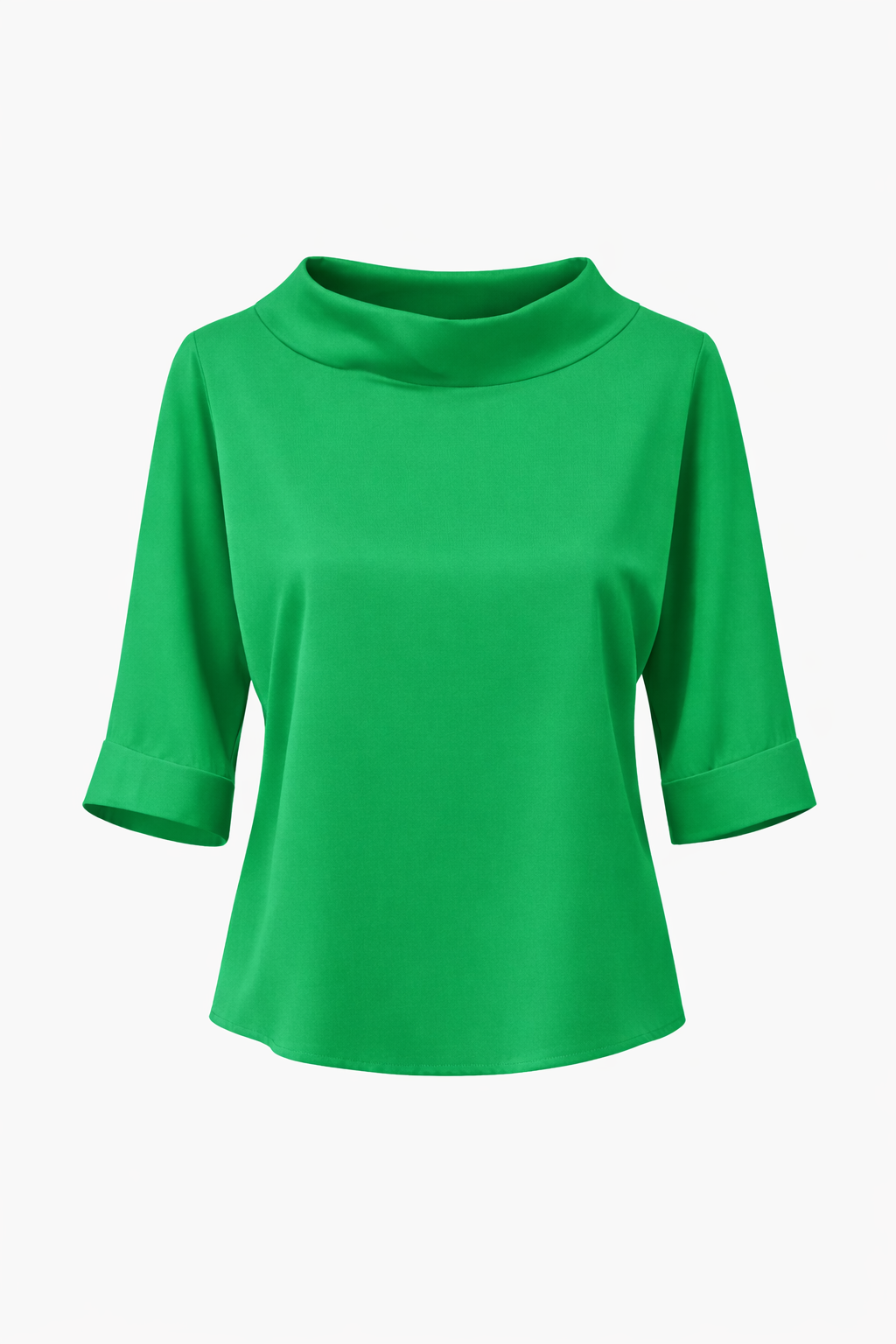 A Móni hosszú ujjú felső finom esésű felső kámzsás gallérjával különleges, mégis visszafogott megjelenést kölcsönöz. Lágy vonalvezetése és selymes tapintású anyaga kényelmes viseletet biztosít a mindennapokban és alkalmi összeállításokban egyaránt. Önmagában viselve is karakteres darab, blézerrel vagy nadrággal kombinálva pedig kifinomult, nőies összhatást teremt.