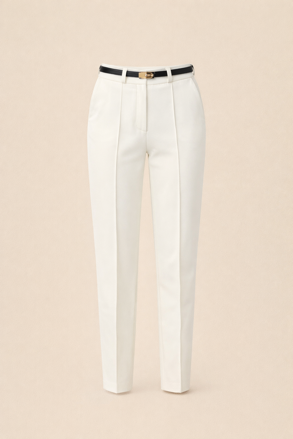 Start nadrágunk jellemzői: letisztult vonalvezetés, kifinomult szabás és időtálló elegancia. Ez a magas derekú nadrág tökéletes választás, ha nőies, mégis magabiztos megjelenésre vágysz. Szép tartású anyaga és a végigfutó élvasalás optikailag nyújtja a lábakat, miközben a karcsúsított, egyenes szabás különösen elegáns hatást kelt.